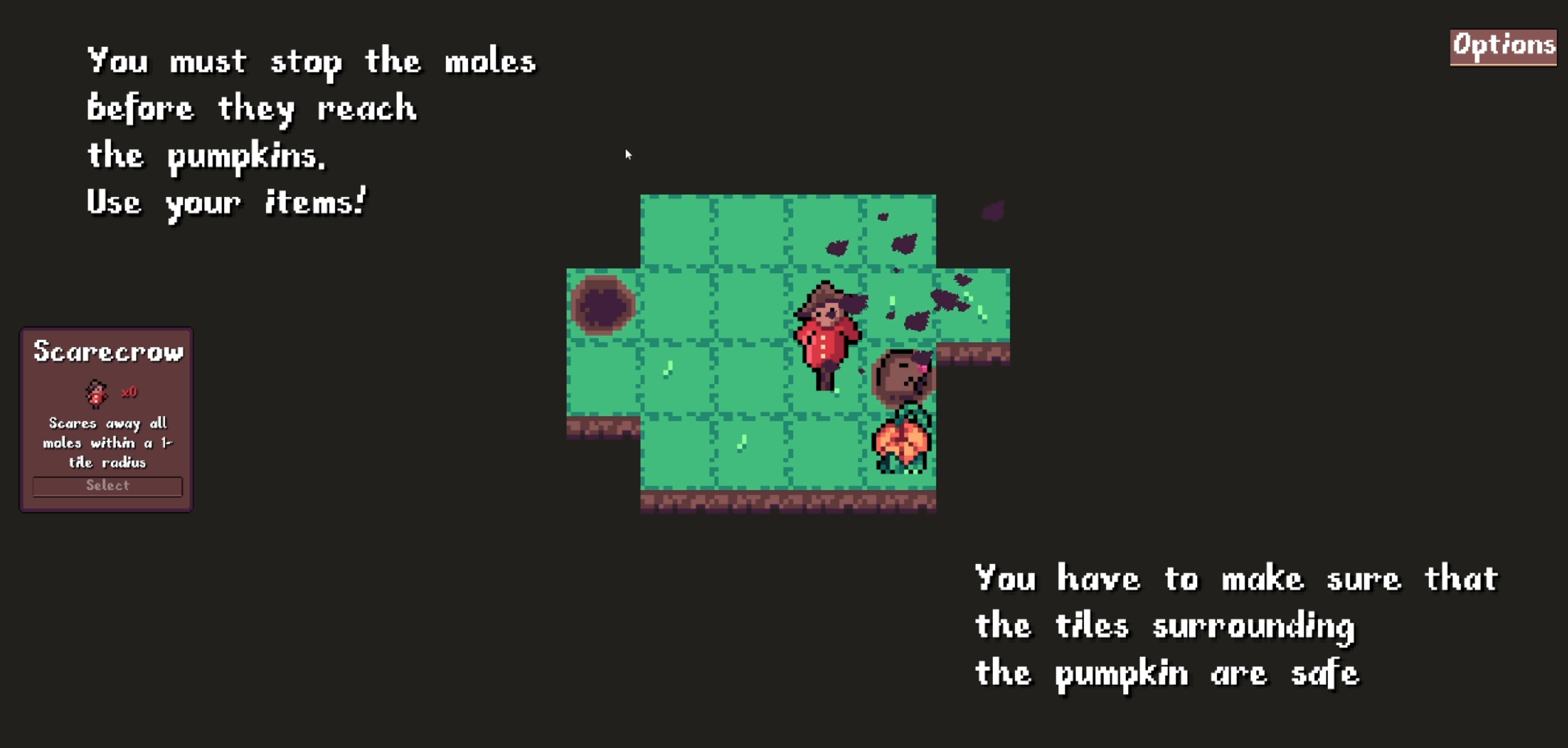 We can't see them, but we know they're here! Molumppkin is a short puzzle game where you must use your items wisely to protect your pumpkins from invading moles!